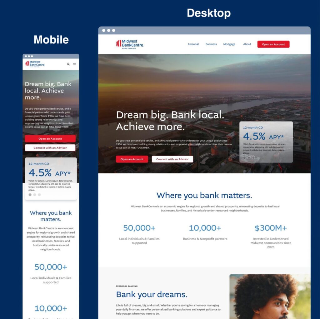 When it comes to mobile optimization for banks, Midwest BankCentre is a perfect example of how thoughtful design and strategy can transform digital banking. As a long-standing community bank with deep local roots, their goal was to modernize their online experience without losing the warmth and trust that define their brand.