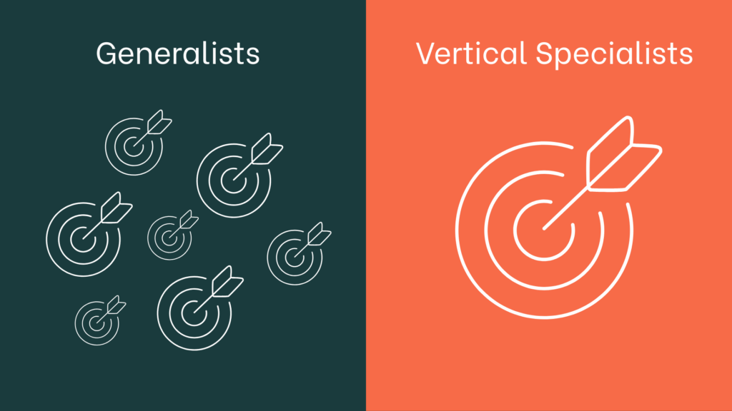 Corey Quinn has seen this pattern play out time and time again with the agencies he works with. As he explains, the root cause is a psychological bias that “more equals more” – the belief that by serving a wider range of clients, the agency will be more successful. But the reality is the opposite: agencies that vertically specialize grow 50 times faster and with more certainty than generalist firms.