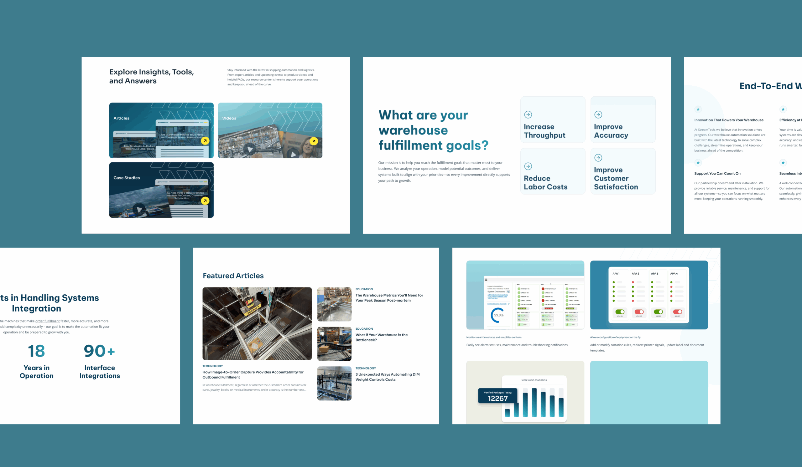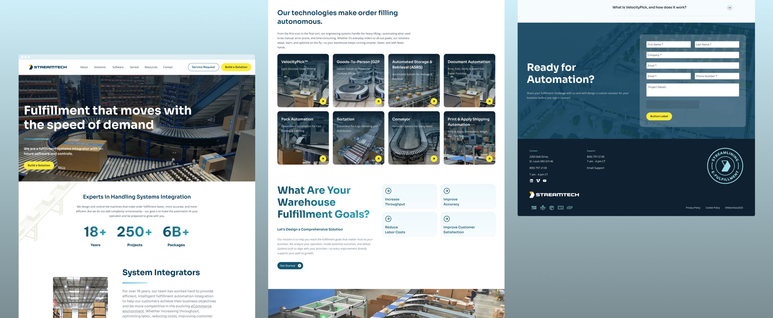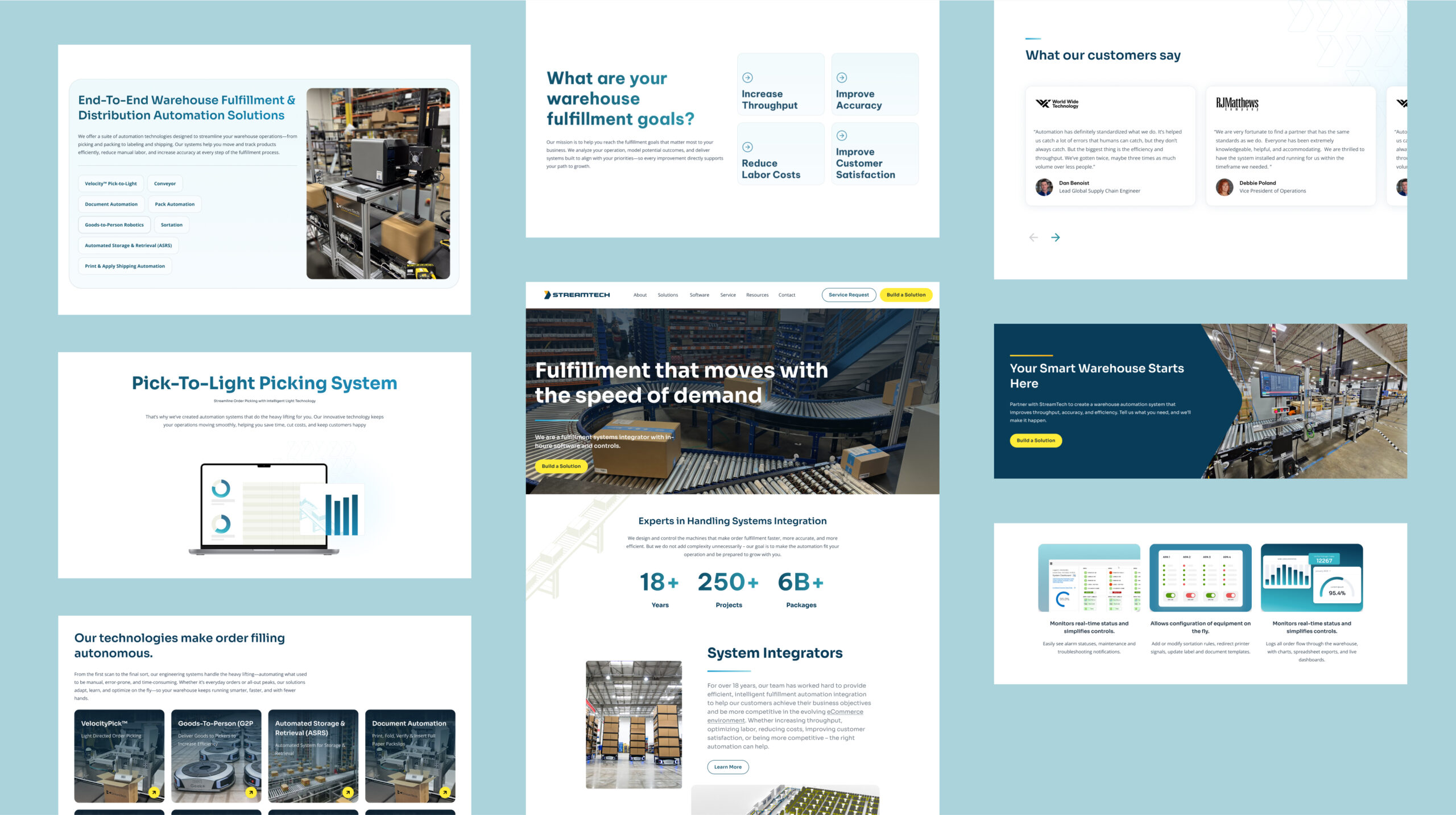 One of the biggest challenges was communicating how each individual system (picking, packing, labeling, or sorting) fits into the bigger picture of a fully automated warehouse. Through copywriting, updated page structures, and imagery, the new site tells that story clearly and cohesively. Visitors can now see how StreamTech’s individual solutions connect to create smarter, more efficient fulfillment environments, reinforcing their role as a true end-to-end systems integrator.
