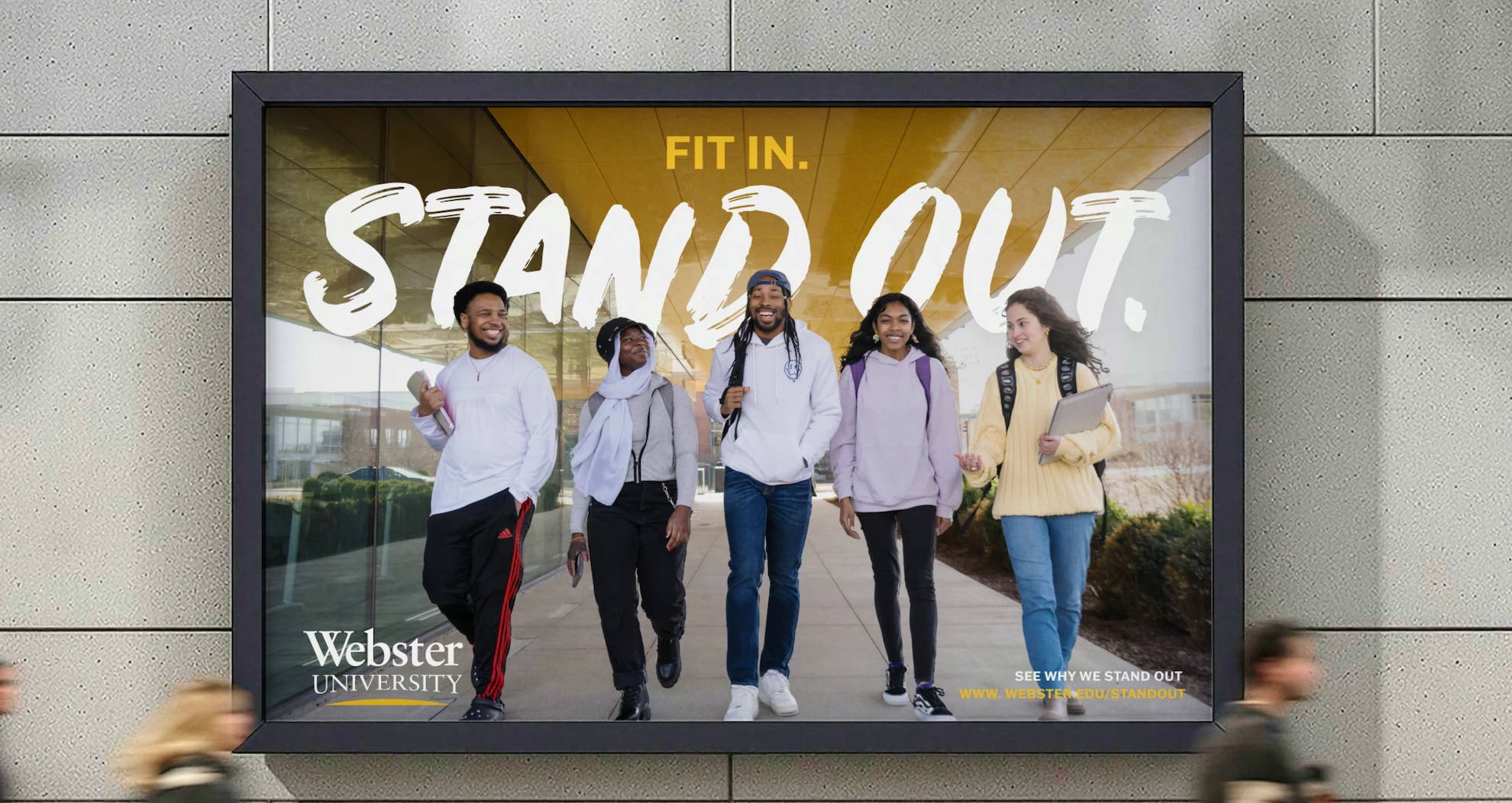 The undergraduate campaign became the most visible expression of the system. It focused on belonging, individuality, and self-definition, and speaks directly to students navigating identity, community, and future direction.